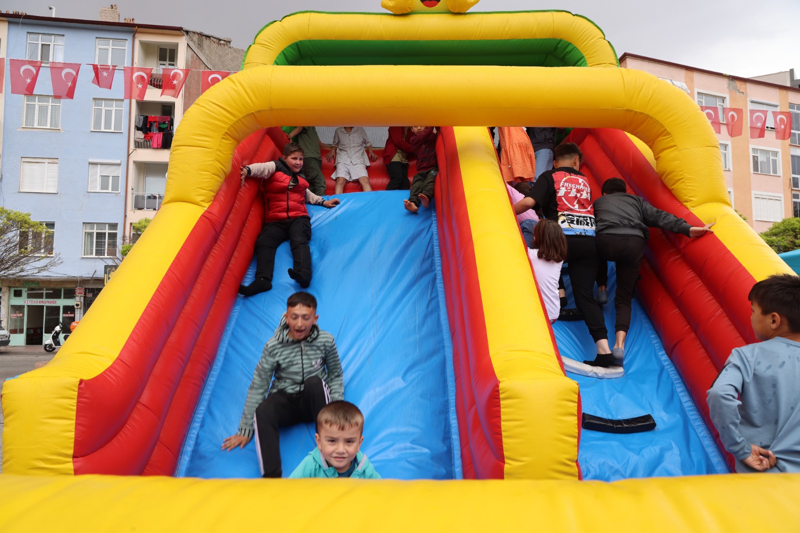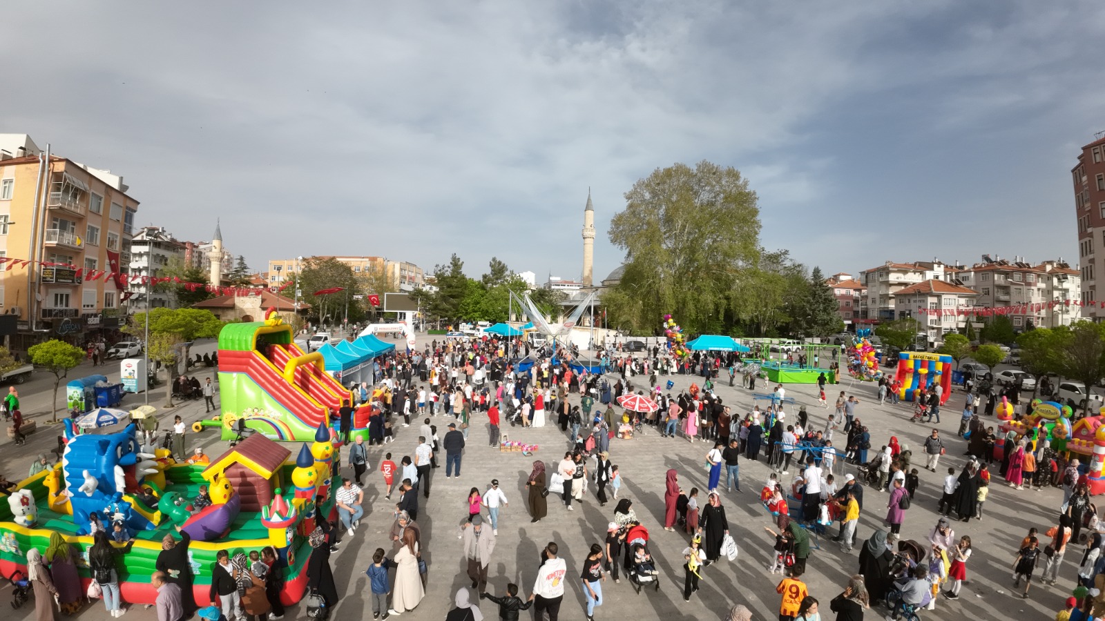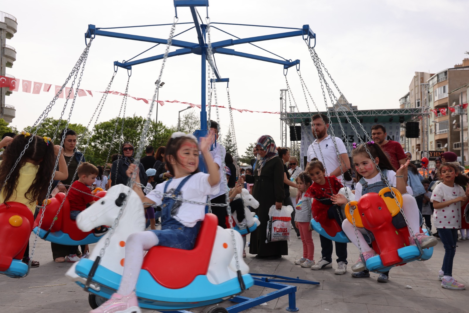 Karaman Belediyesi’nin her yıl düzenli olarak tertip ettiği, 23 Nisan Çocuk Şenliği büyük bir ilgiyle devam ediyor. 23 Nisan günü Aktekke 15 Temmuz Demokrasi Meydanı'na kurulan çocuk şenliğinde; belediye tarafından çeşitli ikramlar dağıtılırken, sahne gösterileri, zıpla-yapış, canlı langırt, uzay çadırı, kaydırak gibi oyunlarla eğlenen küçükler, yüz boyama alanında da birbirinden farklı karakterlere dönüşerek müzik eşliğinde bayram coşkusunu doyasıya yaşamaya devam ediyorlar.