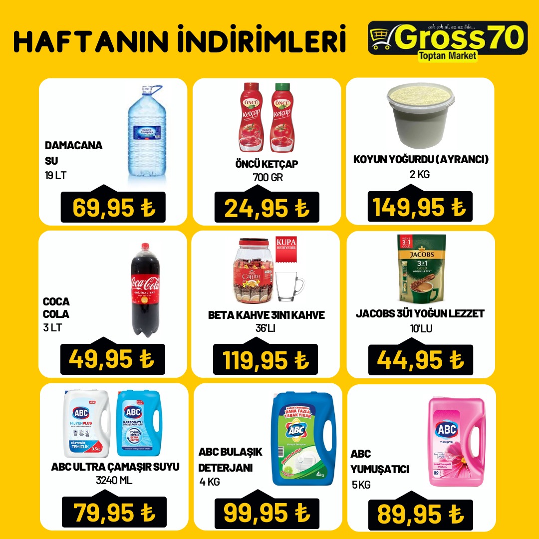 Karaman Gross70 Toptan Market Haftanın indirimleri ile adından sıkça söz ettiriyor.