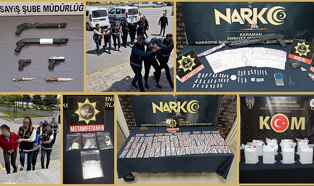 Karaman İl Emniyet Müdürlüğü’nden yapılan açıklamada, “İl Emniyet Müdürlüğümüzce asayiş, narkotik ve trafik olayları başta olmak üzere, vatandaşımızın huzurunu bozacak her türlü suçun engellenmesi, suça karışan şahısların yakalanması amacıyla 04-10 Mayıs 2024 tarihleri arasında yapılan çalışmalarda;