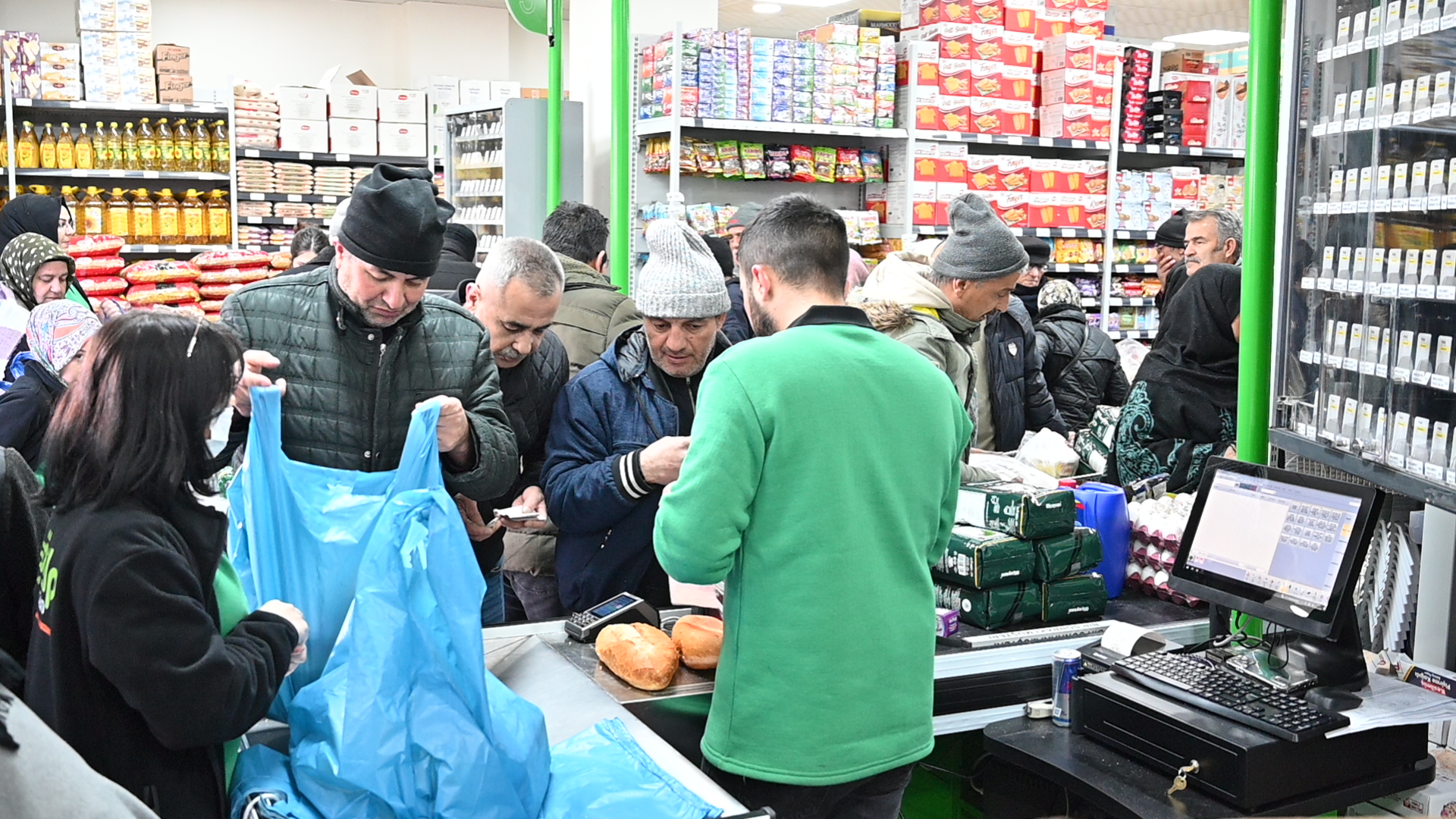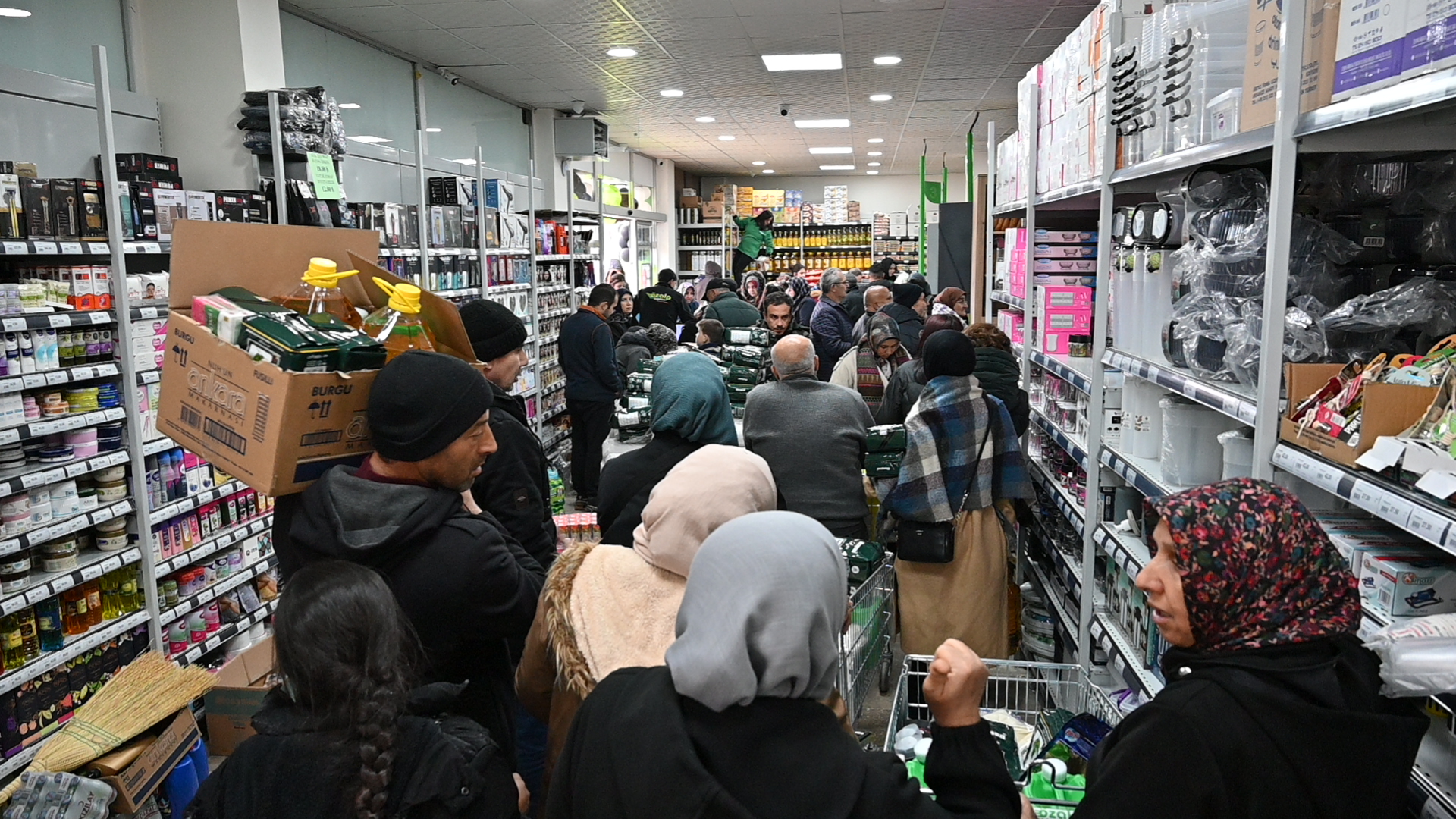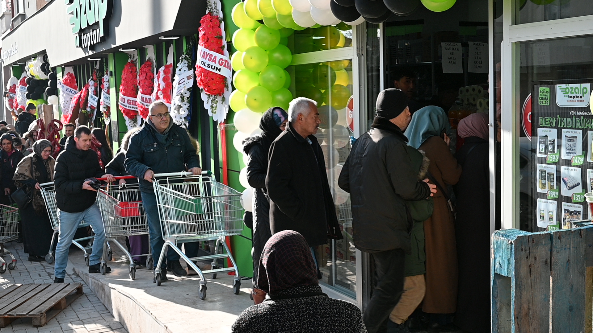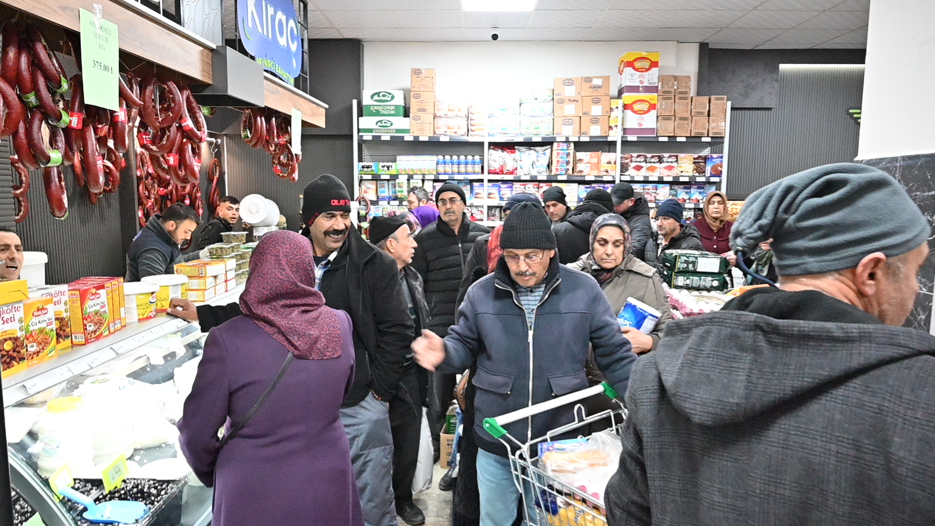 Soğuk havaya rağmen market açılır açılmaz hesaplı alışveriş yapmak isteyen vatandaşlar, Türkiye’nin en uygun fiyatlı temel gıda ürünlerine ulaşmak için markete akın etti. İzdihama neden olan açılışta Karamanlılar Ramazan öncesi temel gıdalarını uygun fiyata aldı.