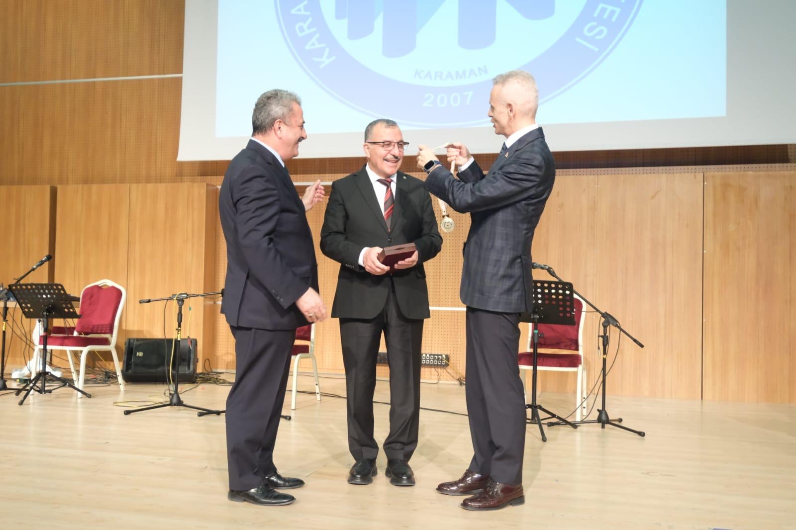 Vali Mehmet Fatih Çiçekli, Karamanoğlu Mehmetbey Üniversitesi (KMÜ) ev sahipliğinde düzenlenen "TÜRKSOY Türk Dünyasına Üstün Hizmet Madalyası Takdim Töreni"ne katıldı.