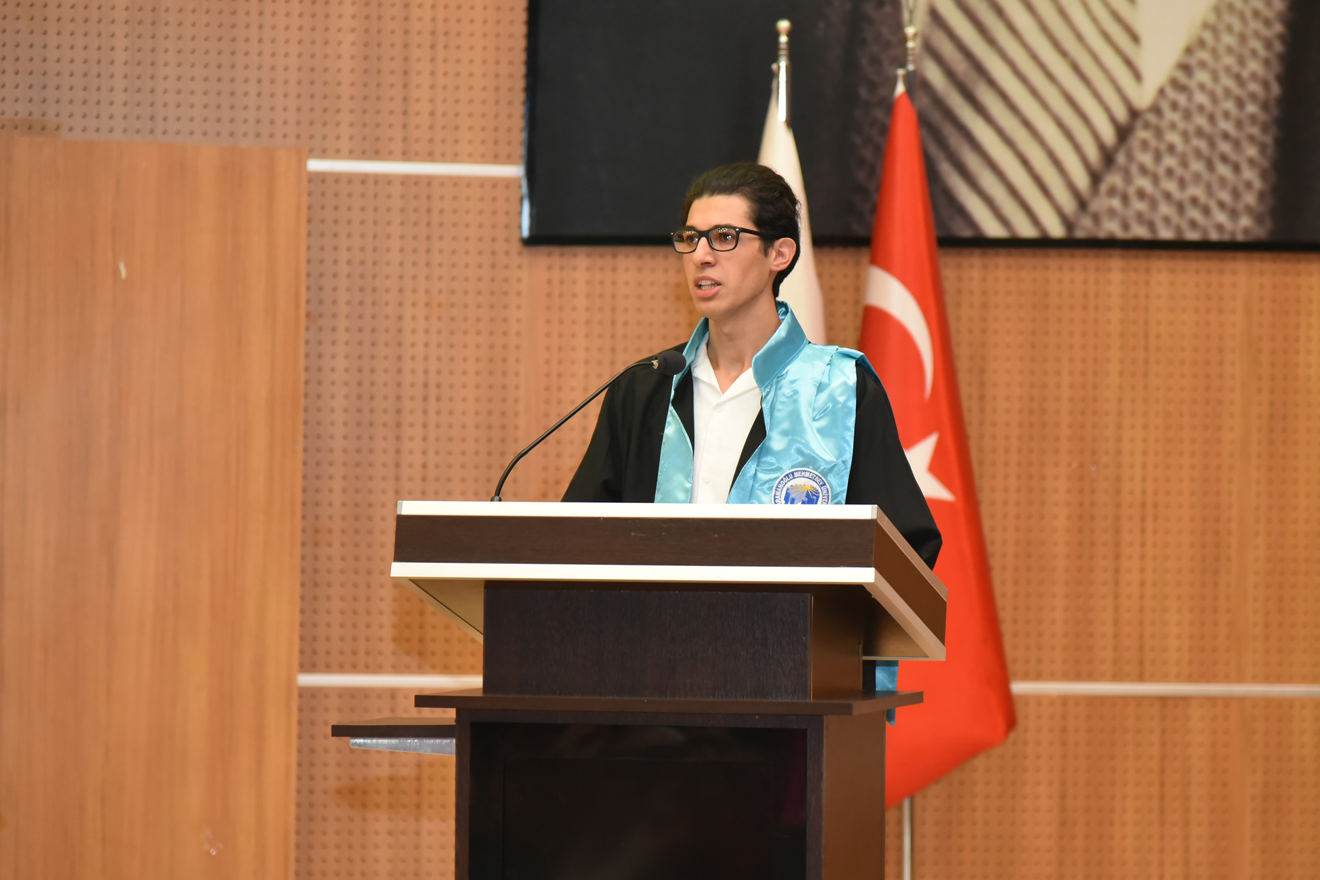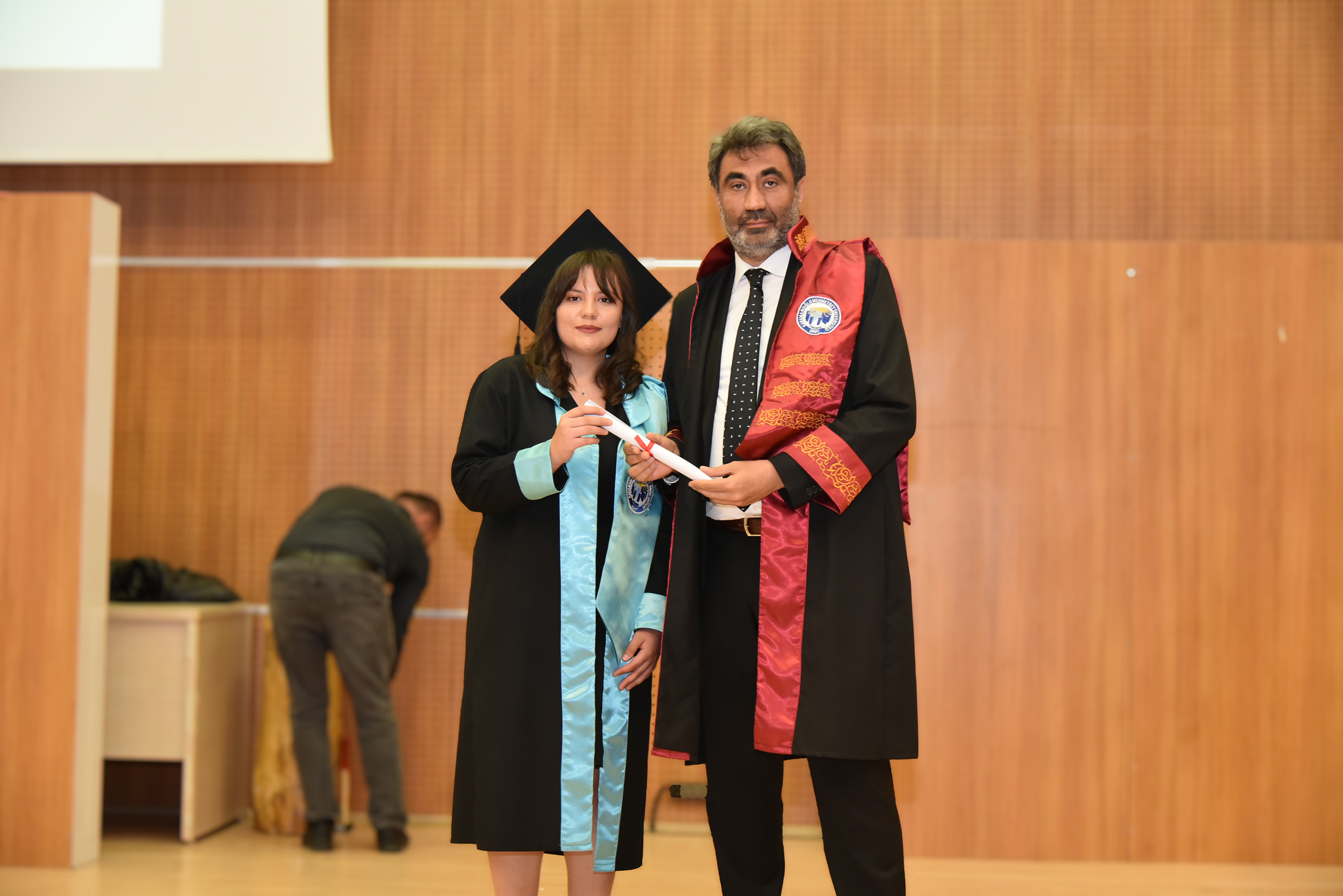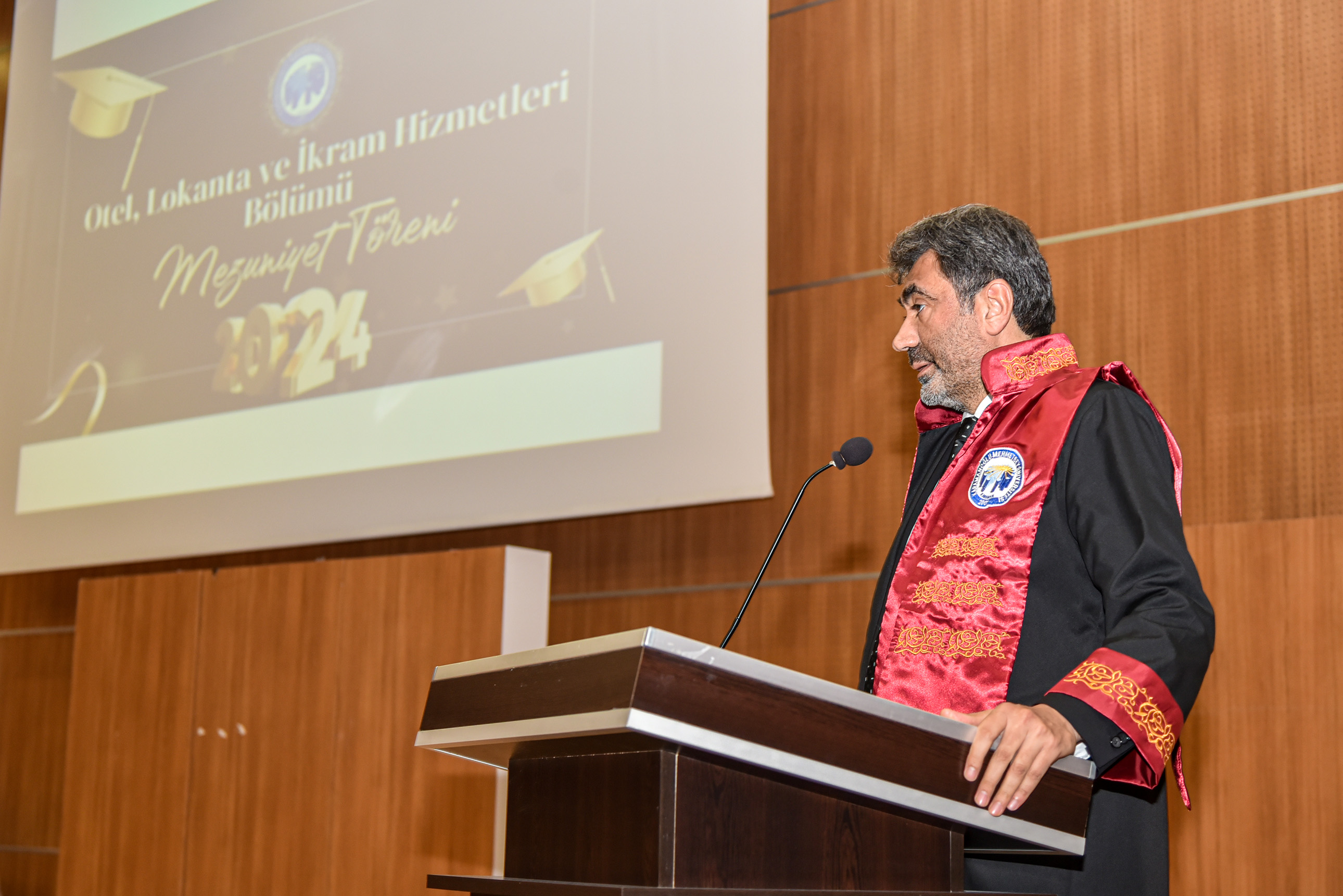 Sosyal Bilimler Meslek Yüksekokulu Otel, Lokanta ve İkram Hizmetleri Bölümü dönem birincisi Burhan Uysal, ‘Eğitim ve öğretimin yanında hayata dair aldığım derslerle buradan ayrılıyorum. Bize rehberlik eden tüm hocalarımıza, fedakârlıkları için canım aileme ve tüm arkadaşlarıma çok teşekkür ediyorum.” dedi.
