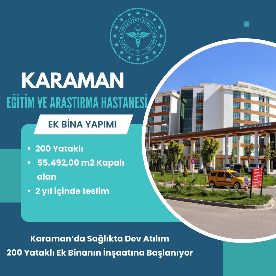 Karaman Eğitim ve Araştırma Hastanesi’nin ek binasının yapılacağı müjdesini AK Parti Karaman Milletvekili Osman Sağlam verdi. Haziran ayının ilk günlerinde yer teslimi yapılarak inşaat çalışmalarına başlanacak. Hastane ek binası, sadece kapasiteyi artırmakla kalmayacak, aynı zamanda modern tıbbi donanımlarıyla bölgenin sağlık hizmetlerinde yeni bir dönemin kapılarını aralayacak. Karaman Eğitim ve Araştırma Hastanesi’nin kapasitesinin artırılması amacı ile 200 Yataklı Ek Bina yapılması ile ilgili projede Mart ayında (21 Mart 2024-2. İhale) tamamlanan ihale ile projenin yüklenicisi ile Bakanlık tarafından sözleşme imzalandığı ve bu günlerde de Karaman’da yer teslimi yapılarak inşaatına başlanacağı bildirildi."Karaman’ın geleceğine yapılan önemli bir yatırım"AK Parti Karaman Milletvekili Osman Sağlam yaptığı açıklamada, "Karaman Eğitim ve Araştırma Hastanesi’nin 200 yataklı ek bina projesine ilişkin çalışmalar hızla devam ediyor. İlk olarak 25 Aralık 2023 tarihinde ihale sürecine girilen projede, ilk ihale teklif gelmemesi nedeniyle sonuçsuz kalmıştı. Ancak, 21 Mart tarihinde tamamlanan ikinci ihale süreciyle birlikte, proje tekrar rayına oturdu. İhale sürecinde hiçbir itiraz gelmemesi, projenin sorunsuz bir şekilde ilerlemesi için önemli bir adım oldu. Yapılan titiz değerlendirmelerin ardından, 27 Mayıs 2024 tarihinde yüklenici firma ile resmi sözleşme imzalanarak projenin en kritik aşamalarından biri başarıyla tamamlandı. Karaman'ın sağlık sorunlarının farkında olarak, bu projeyi yakından ilgilendiğimiz ve her aşamasını titizlikle takip ettiğimiz bu süreçte, doğru adımların atılması Karaman halkının sağlık hizmetlerine erişimini daha da güçlendirecek. Yüklenici firma, anlaşmanın imzalanmasıyla birlikte hızla harekete geçerek, projenin planlanan takvime uygun şekilde ilerlemesini sağlayacak. Haziran ayının ilk günlerinde yer teslimi yapılarak inşaat çalışmalarına başlanacak. Karaman Eğitim ve Araştırma Hastanesi’ne kazandırılacak olan bu ek bina, sadece kapasiteyi artırmakla kalmayacak, aynı zamanda modern tıbbi donanımlarıyla bölgenin sağlık hizmetlerinde yeni bir dönemin kapılarını aralayacak. Sağlık alanındaki bu büyük atılım, Karaman’ın geleceğine yapılan önemli bir yatırım olarak öne çıkıyor. Bu projeyle, Karaman’ın sağlık sorunlarını iyileştirmek için üzerimize düşen ne varsa yapmaya devam edeceğiz. Başta Sayın Cumhurbaşkanımız Recep Tayyip Erdoğan olmak üzere, Sağlık Bakanımız Sayın Fahrettin Koca’ya, Karaman Milletvekillerimiz Sayın Selman Oğuzhan Eser ve döneminde projeyi başlatan Sayın Dr. Recep Şeker’e, Sağlık Bakanlığı üst kademe yöneticilerine, Karaman İl Sağlık Müdürümüze ve bu süreçte katkı veren, değer katan ve emeği geçen tüm kişi ve kuruluşlara gönülden teşekkür ediyoruz” dedi.