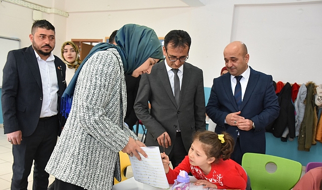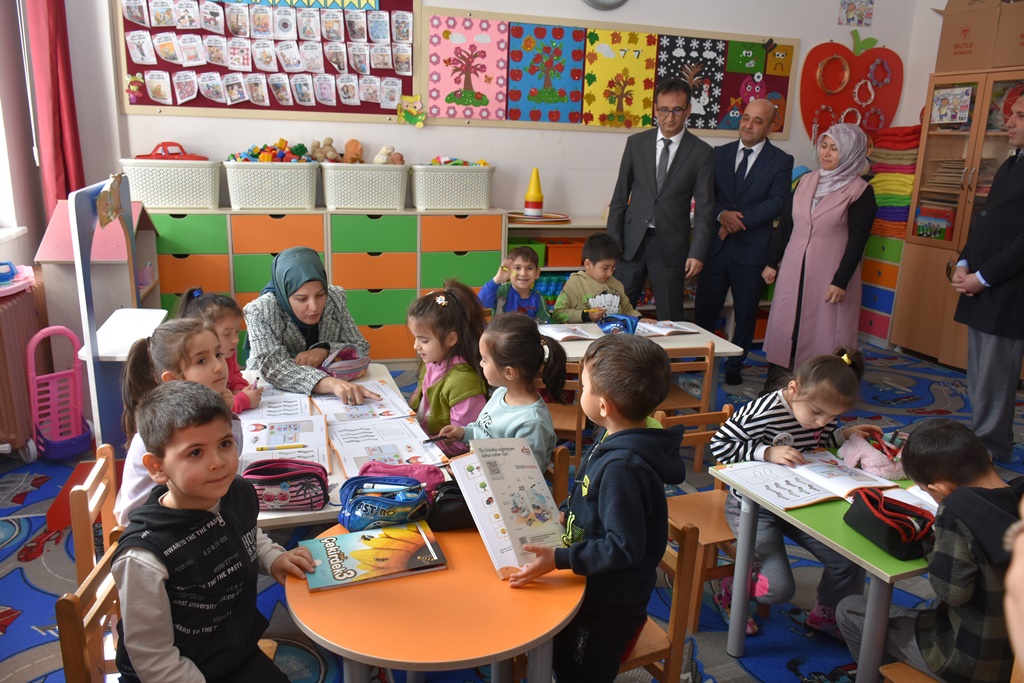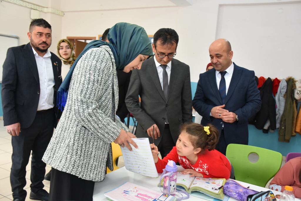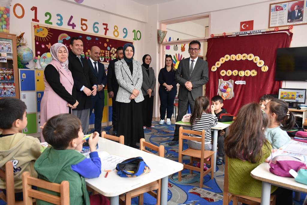 Şeyh Edebali Mahallesi Muhtarı Durmuş Yüksel ve İl Millî Eğitim Şube Müdürü Şahin Yeter’in de eşlik ettiği ziyarette, ilk olarak okulöncesi sınıflarını ziyaret eden Vali Yardımcısı Çiçekli ve İl Müdürü Çalışkan, minik öğrencilerle keyifli bir sohbet gerçekleştirdi. Ardından ilkokul sınıflarını dolaşan heyet, öğrencilerin derslerine dair düşüncelerini dinleyerek onlarla birebir ilgilendi.